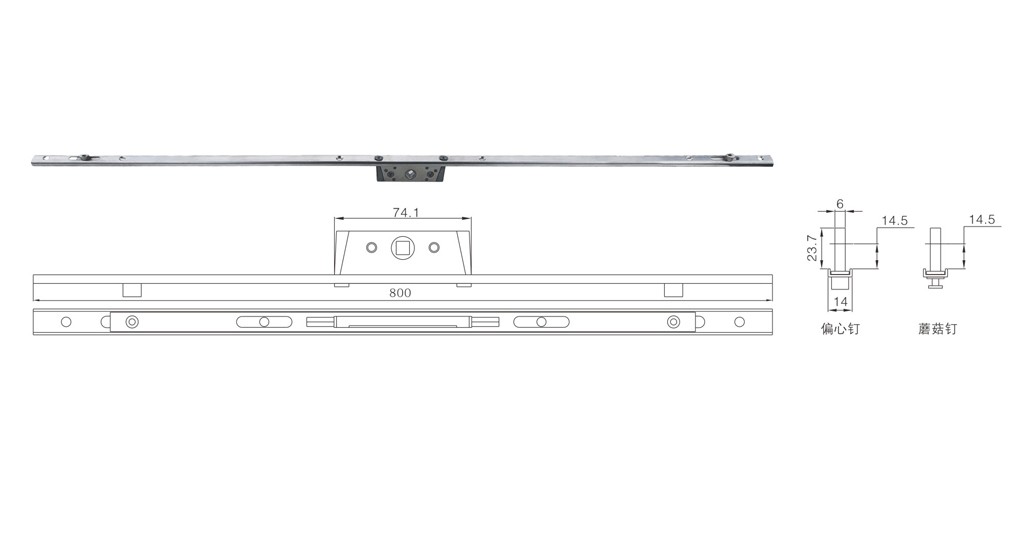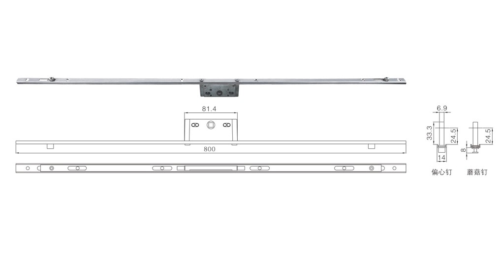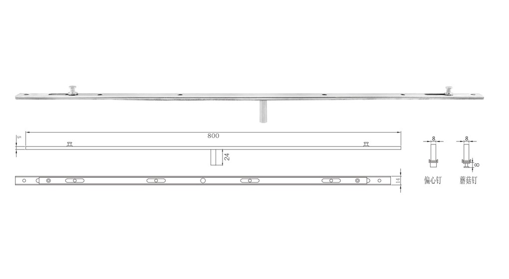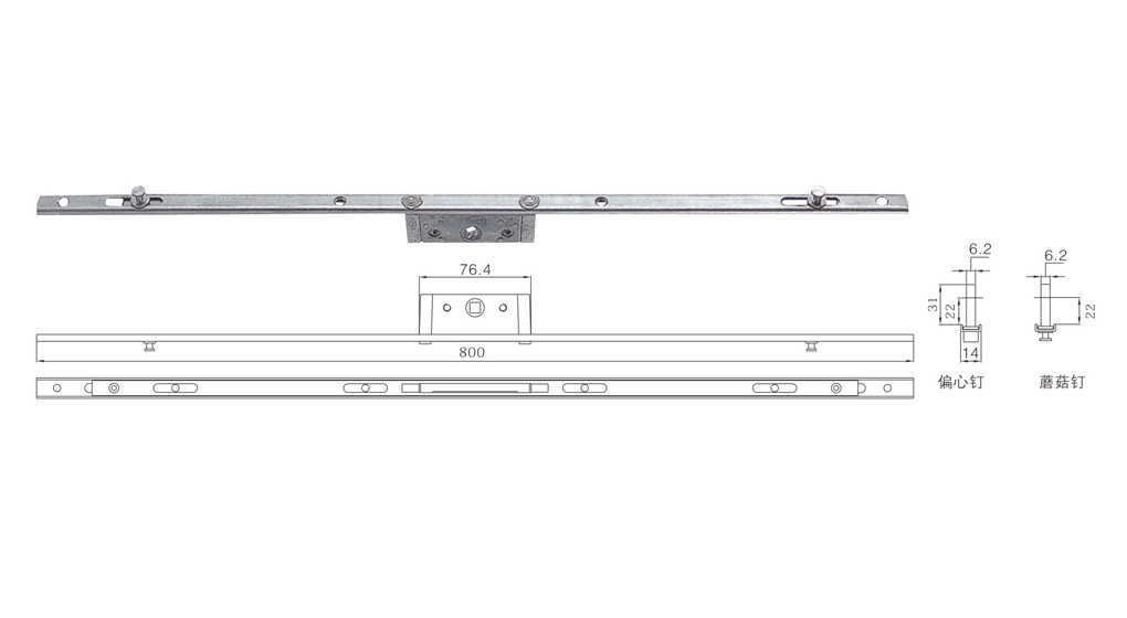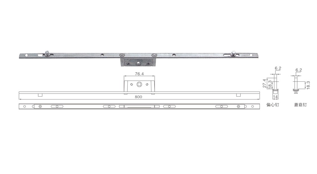 帶鎖盒單向傳動(dòng),常用于平開(kāi)窗、門(mén)。偏心釘、工字釘高度可定制。