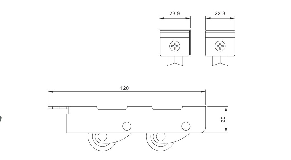每對承重80KG,加塑料外殼可調節寬度,常用于推拉門。
