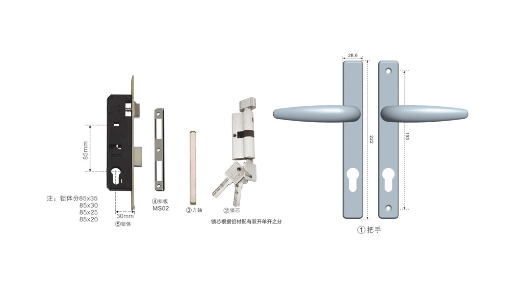 平開門鎖,實用簡潔大方。鎖芯、扣板可按客戶需求選配。