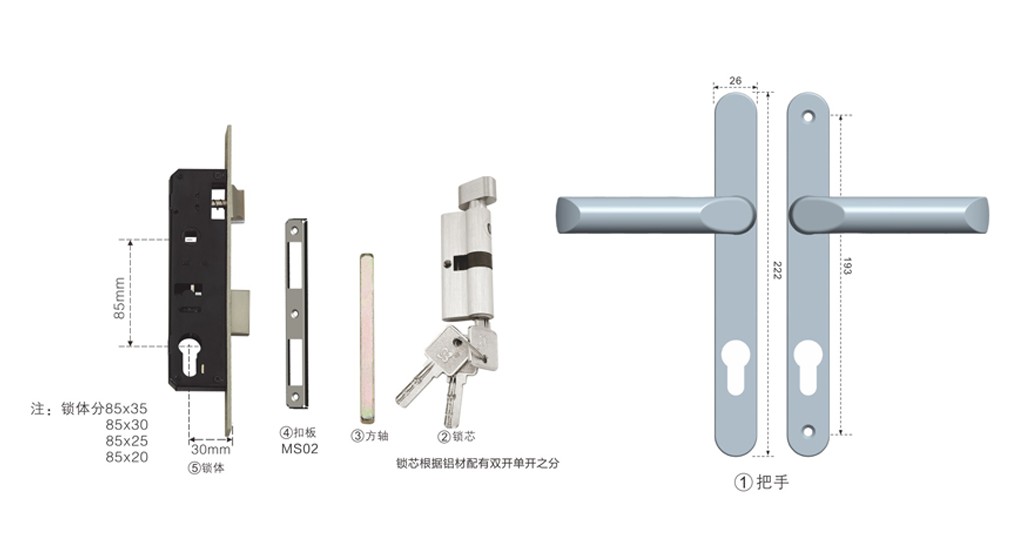 平開門鎖,實用簡潔大方。鎖芯、扣板可按客戶需求選配。